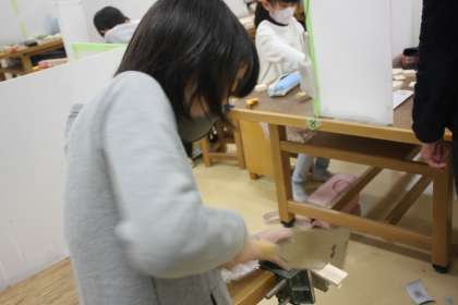 切り終わった子から、やすり掛けをして表面を滑らかにしていきます。