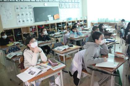 4年生が社会科の時間に、東京に伝わる伝統工芸「東京染小紋」について学習をしています。