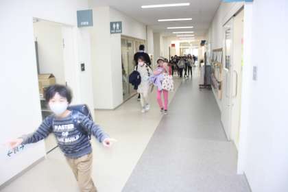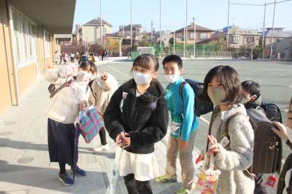春のような暖かい日差しを受けて、いつも以上に足取りの軽い若小の子たち。