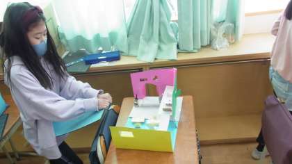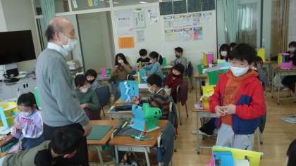 今日は鑑賞の時間がありました。講師の大野先生からも、友達の作品を見て、面白いところやすごいと思ったところ、工夫しているところなど、鑑賞の視点を指導していただきました。最後はみんなで感想を発表しました。