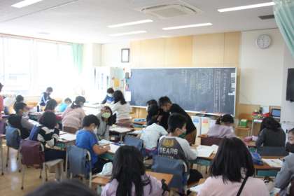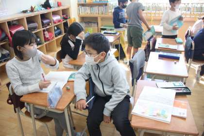 今日は教科書に載っている文章を読みながら、付箋を使って交流する活動に取り組みました。