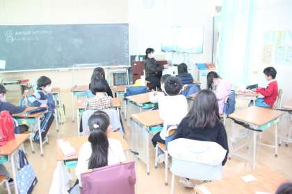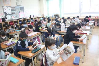 おっと、クラスによっては先生による読み聞かせが行われています。