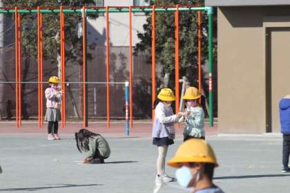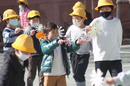天使のような1年生が、若小の校庭いっぱいに広がって風を感じます。