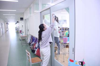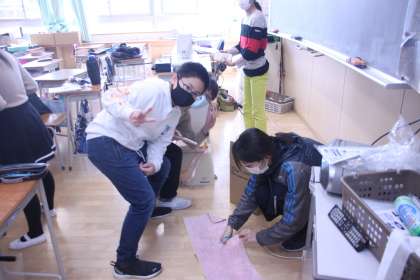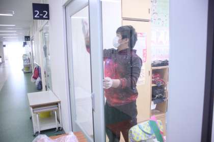 今日は各教室の清掃活動とプレゼントの雑巾づくりに取り組みます。