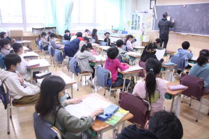 間違ったところがあれば、すぐに直し、次回に備える2年生。