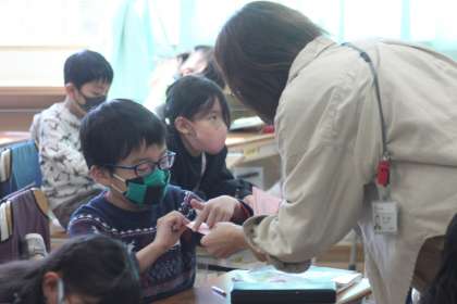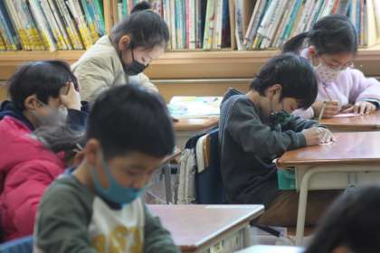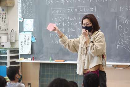 1年生がもうすぐ卒業していく6年生へ、プレゼントを用意しています。