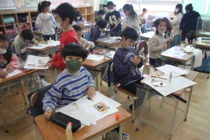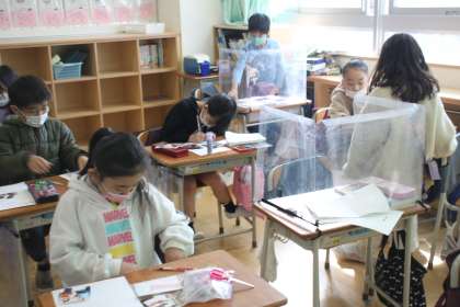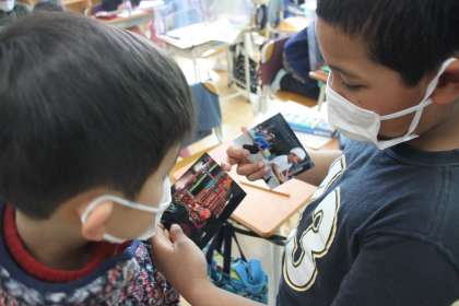 おうちで用意していただいた写真をいとおしそうに眺める2年生たちでした。