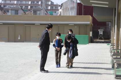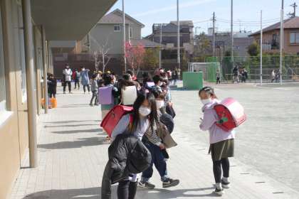 給食が終わったクラスから下校開始。