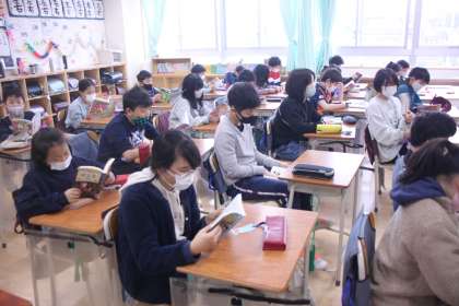 今日は金曜日でしたので、全学年で朝読書を行いました。