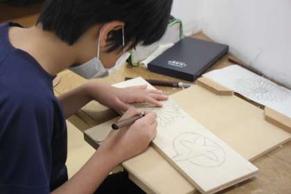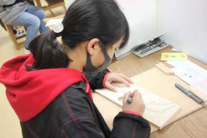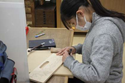 彫刻刀を持つ手も頼もしく、一彫りひと彫り、丁寧に掘り進めていきます。