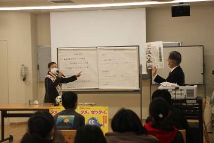 ビデオと軽妙なトークで6年生をひきつける講師のお二人。