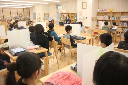 4年生が学校図書館にやってきました。