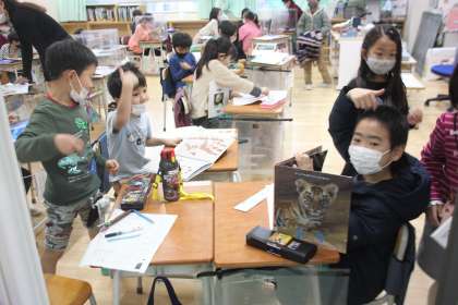 大きさ、食べ物、身体の様子など、1年生たちは興味津々の様子です。