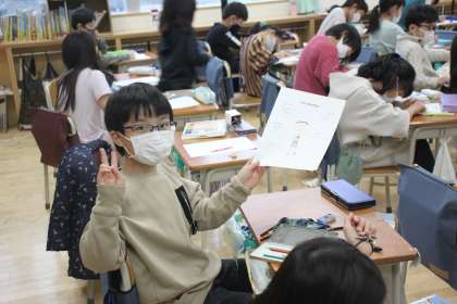 2年生が生活科の学習で、小さい頃のことをアルバムにまとめています。