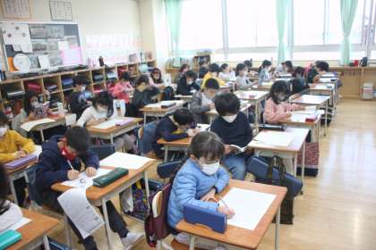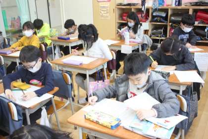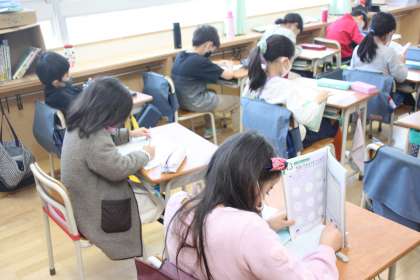 静まり返った教室内で、子どもたちが黙々と九九の練習を繰り返しています。