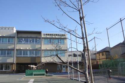 校庭に植えられている木のうち、一本はカワヅザクラ。