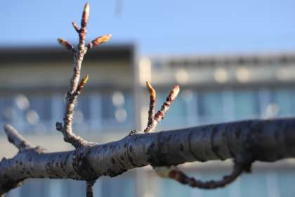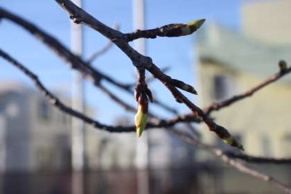 【間もなく開花!】校庭のカワヅザクラ