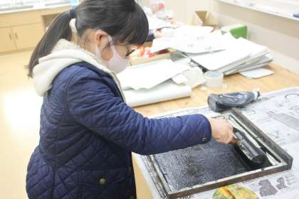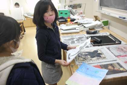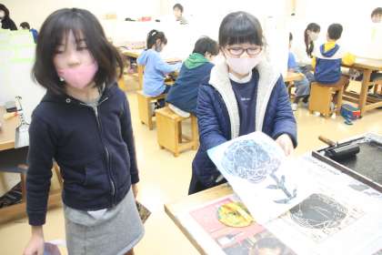 4年生が長らく取り組んできた木版画の活動も、今日が最終回。