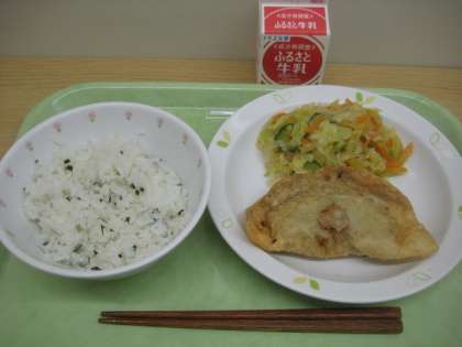 わかめごはん ジャンボぎょうざ 春雨サラダ 牛乳