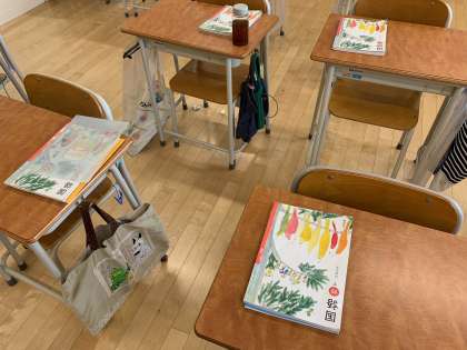 4年生の机の上には、もうすでに3時間目に使う教科書とノートが用意してあります。