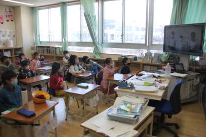 大型モニターで集会委員会の子達が大活躍!