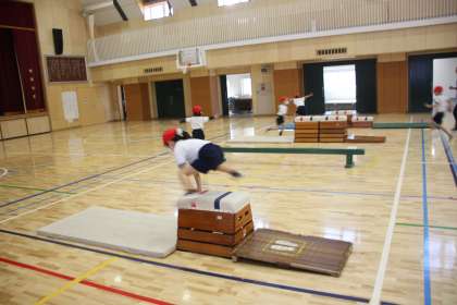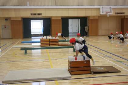 とび箱と平均台が組み合わさった4種類のアトラクション。