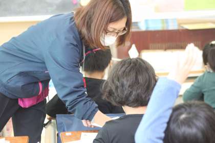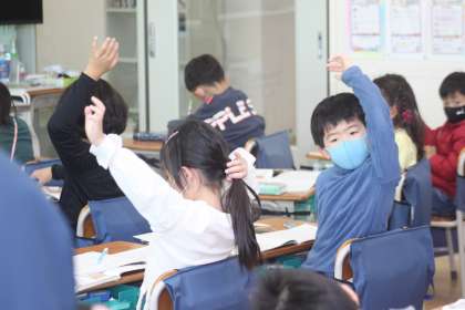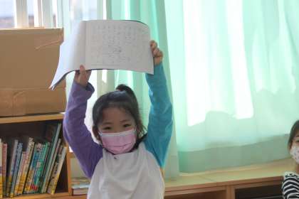 できた子から手を挙げて、先生にまるを付けてもらいました。