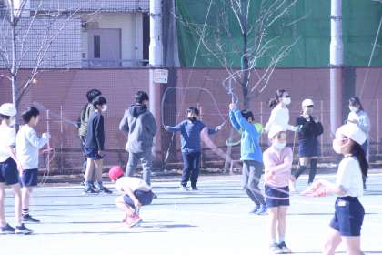 今日も中休みの校庭では短なわとびに取り組む子たちの様子が見られます。