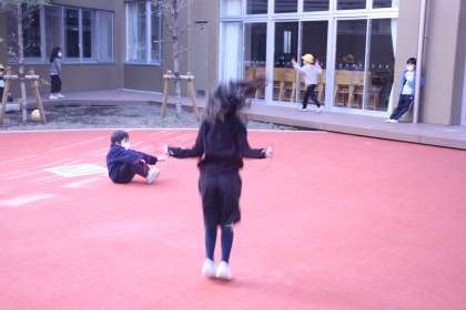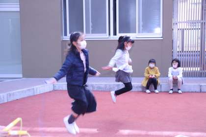 1年生が光庭で短なわとびをしました。