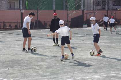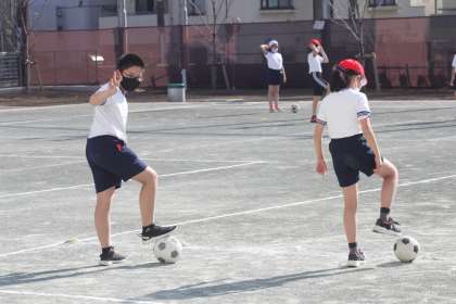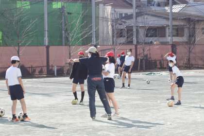サッカー型ゲームの練習として、ボール取りを楽しみました。