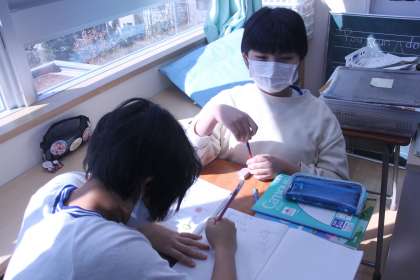 教科書の後ろの方に載っている発展問題に挑戦する6年生。