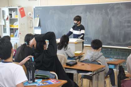 6年生は毎朝、日直がニュースについてのスピーチを行っています。