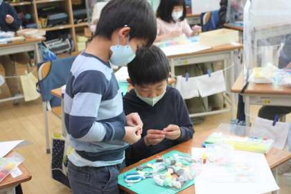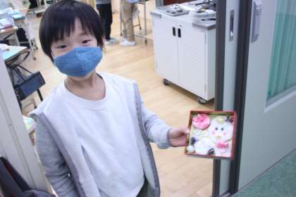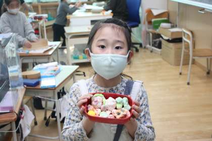 1年生が紙粘土を使ってお弁当の工作をしています。