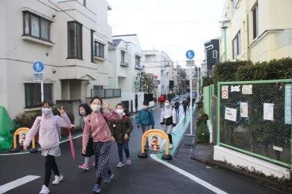 いつもよりも薄着の子どもたちが元気いっぱいに登校してきました。