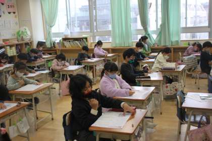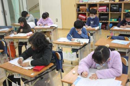 1年生が若村塾の時間に、視写の活動に取り組みました。