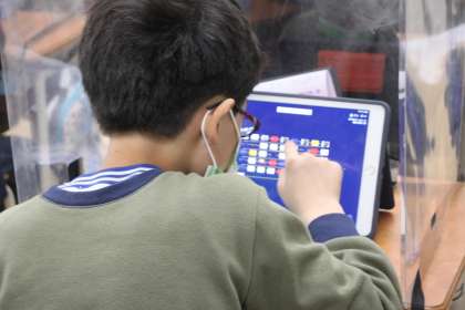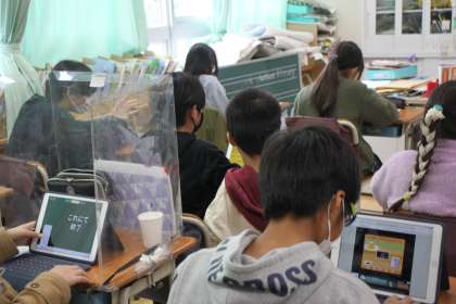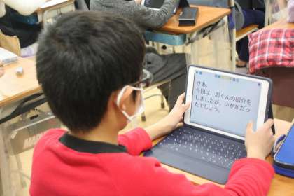 5年生が情報共有ソフト「ロイロノート」を使っています。