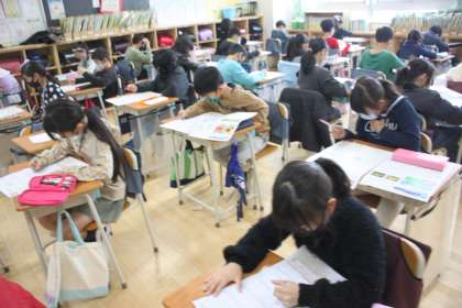3年生の教室では、テストが行われています。