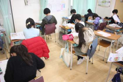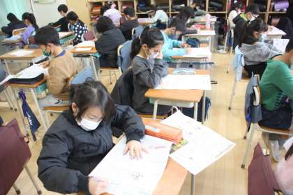みんなで集中して用紙に向かう3年生。