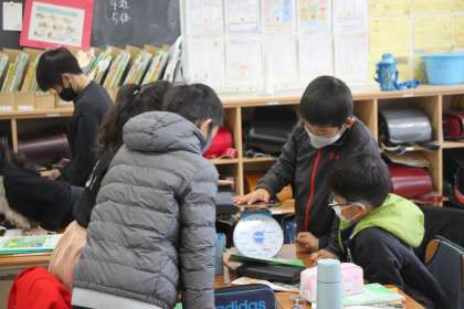今日は油粘土を使って、形が変わると重さが変わるかについての実験をしています。