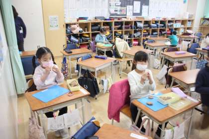 またお隣のクラスは、サプライズな席替えのため廊下で待機しています。