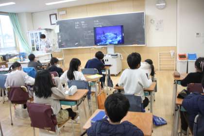先生がまず大型モニターに写したのは、小笠原諸島父島で観ることができるという大きなウミガメ。