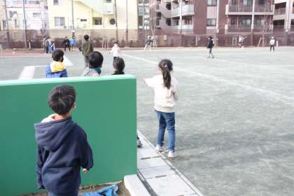 8時10分になると同時に、元気に校庭遊びが始まります。