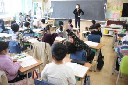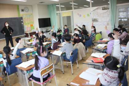 1年生が国語の学習の一環で、生き物を飼うことについて考えています。