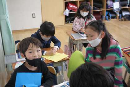1年生が図工でメッセージカード作りに取り組んでいます。