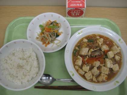 麦入りごはん 四川豆腐 塩ナムル 牛乳