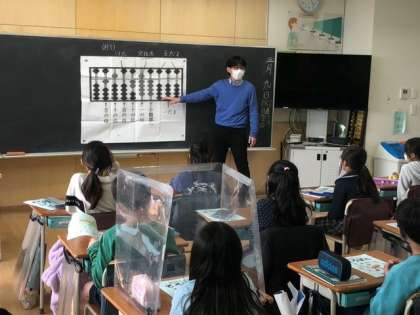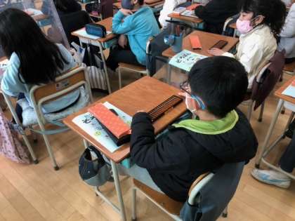 そろんばんの使い方について学びました。そろばんは計算する時、みてわかりやすくする道具でもあり、素早く計算するための道具でもあると学びました。これを使って計算練習に挑戦だ!