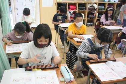 初めてそろばんに触る子も多かったようですが、今ではすっかり扱いに慣れました。