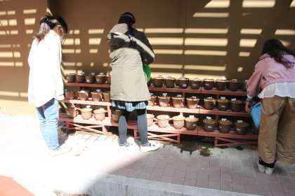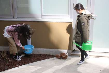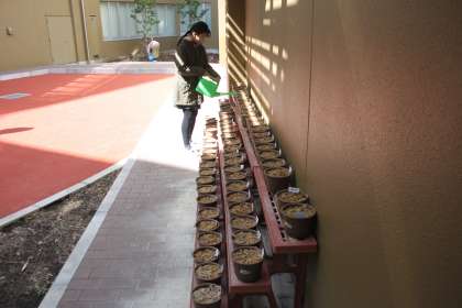 5年生は休み時間ごとに、サギソウへの水やりに余念がありません。