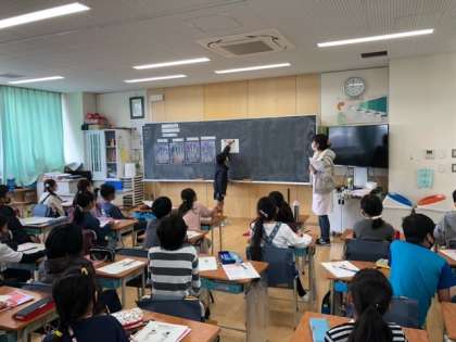養護の先生から清潔と健康について教えてもらいました。毎日何回も手を洗うことが多く、自分の手はきれいだろうと思っていた子ども達ですが、実は洗い忘れがあると手には黴菌がたくさん残っていることを知りました。健康に生活していくためには、身の回りをきれいにしていくことが大切だと改めて学びました。