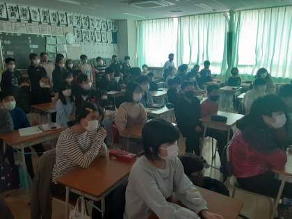 毎年、若小でお話し会を開いてくださっている方が来校し、6年生のためのお話し会をしてくださいました。
